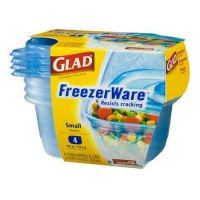 Specially formulated to withstand extreme temperatures, glad freezer ware plastic food containers resist cracking in the freezer. Use them to freeze homemade soups, sauces, cookies and your other favorite foods. When your hungry, just place your container in the microwave, defrost your food, press reheat and enjoy. When your done, simply place your freezer ware container in the dishwasher for easy clean up. This portable, 3 cup size is also great for taking entrees, snacks and sides on the go or for storing food in the fridge or cupboard. Its tight seal locks in freshness, so your food stays fresher longer and less of it goes to waste. And because these plastic food containers are reusable, they can help conserve resources.Read more Glad Freezerware Food Storage Containers, Small, 4 Count