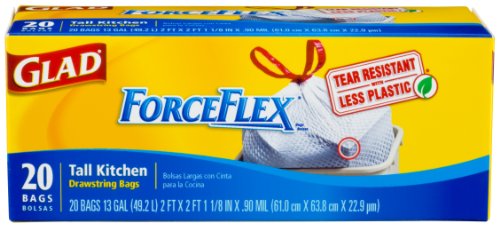 Glad ForceFlex Tall Kitchen Drawstring Bags are tear-resistant to help you keep your trash where it belongs. The unique diamond texture stretches around objects to prevent rips and tears.
