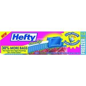 Hefty Grip Track One Zip moves along the top of the bag to seal it the very first time. Contents and date label imprinted on the bag.Read more Pactiv Corp R8-2413 Hefty One Zip Freezer Bag
